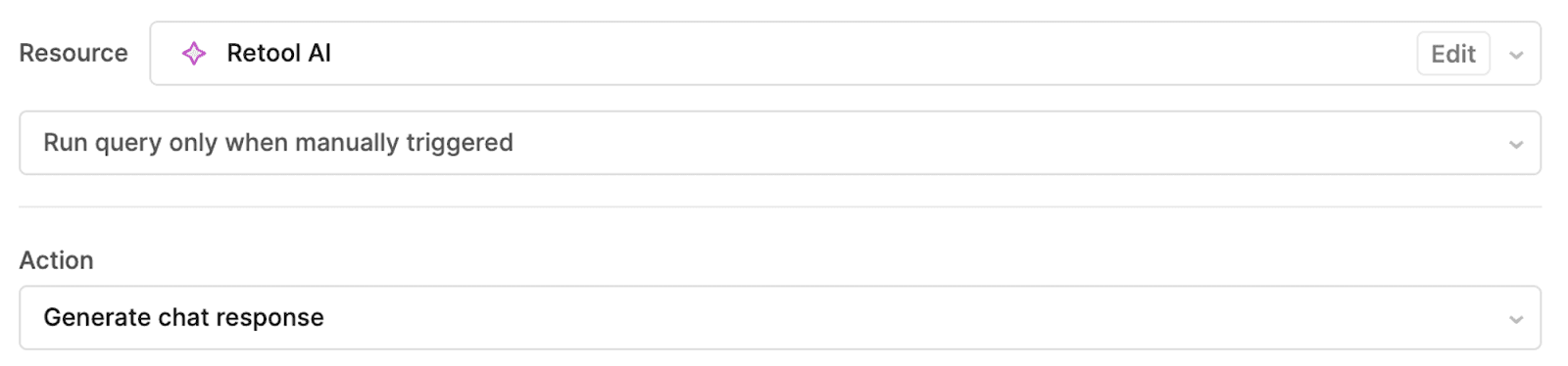For this, we used the generate chat response action type. Retool has several other options, like image generation, classification, etc.