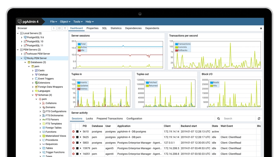 pgAdmin is the only PostgreSQL native GUI — plus, it’s totally free and scales easily across multiple servers. pgAdmin makes for a great choice for Postgres-focused DBAs. That said, a need for distributed servers usually only arises for skilled developers who can tackle this kind of configuration.