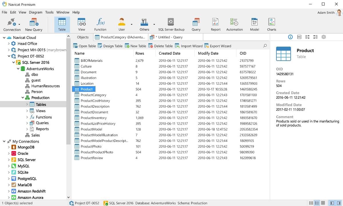 Navicat also comes with a powerful data modeling tool, which lets you visualize database structures and design schemas.