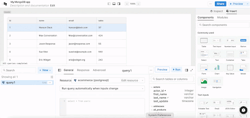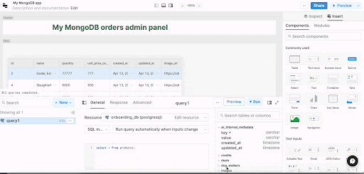 In this post, we’ll show you how to build a simple yet powerful admin panel for your MongoDB instance. Using MongoDB’s sample data, we’ll demonstrate how to query data, build tables and components, and use inline JavaScript to customize them—basically, everything you need in a great MongoDB client/admin panel/GUI with Retool (interested in other options? Check out our guide to best MongoDB GUIs).