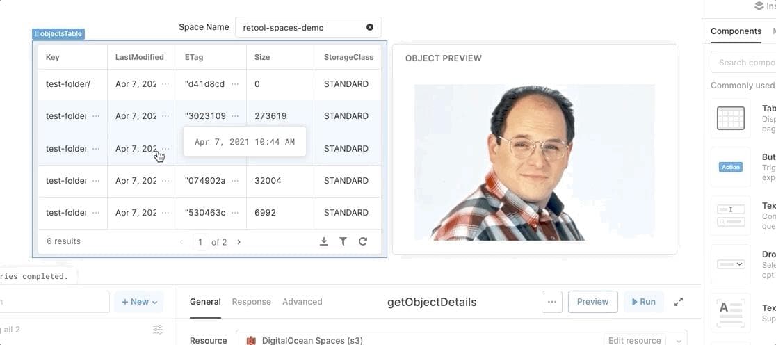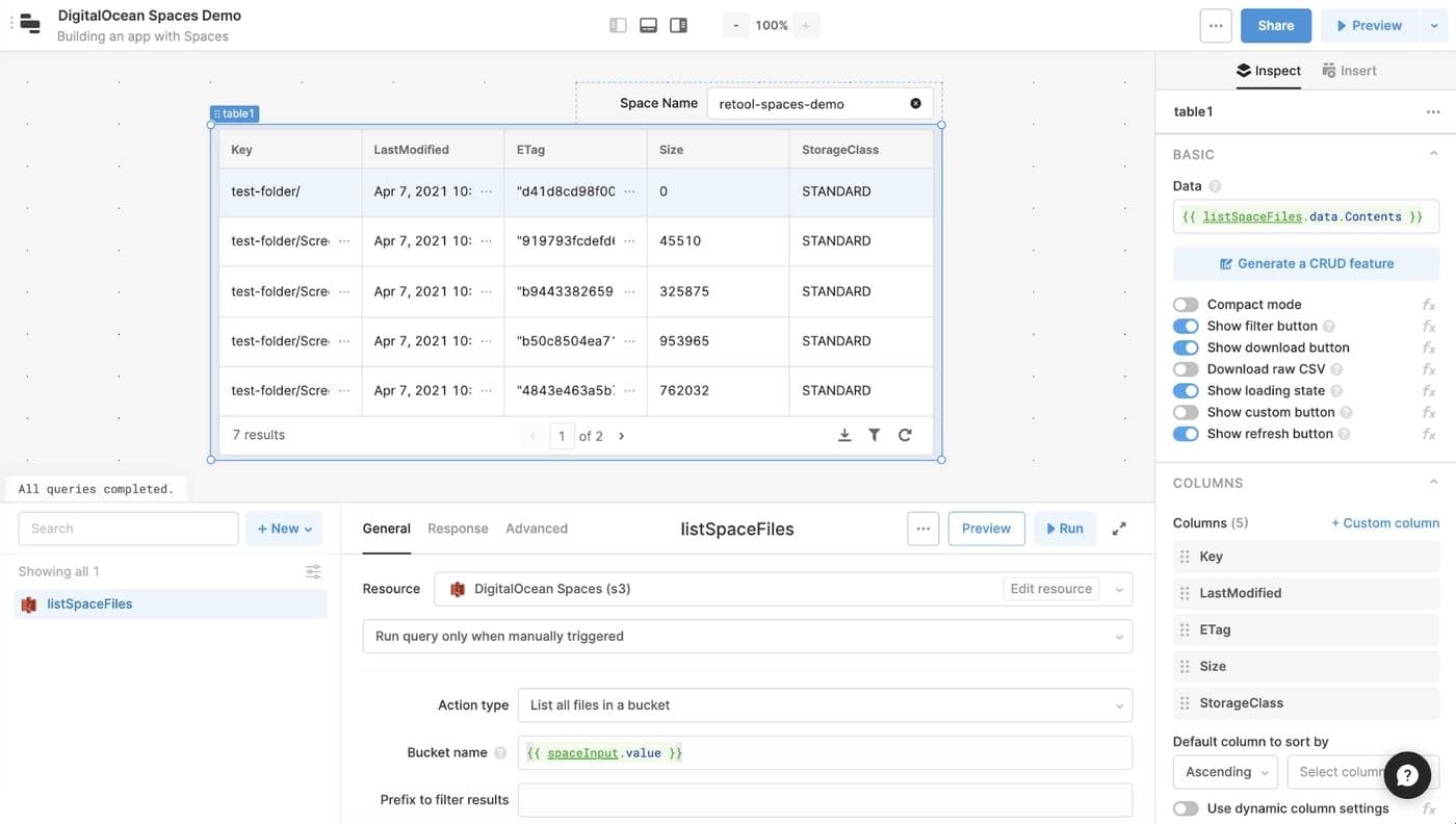 And voila! You’ve got a basic UI for working with your Spaces data in Retool in checks notes about 20 minutes.