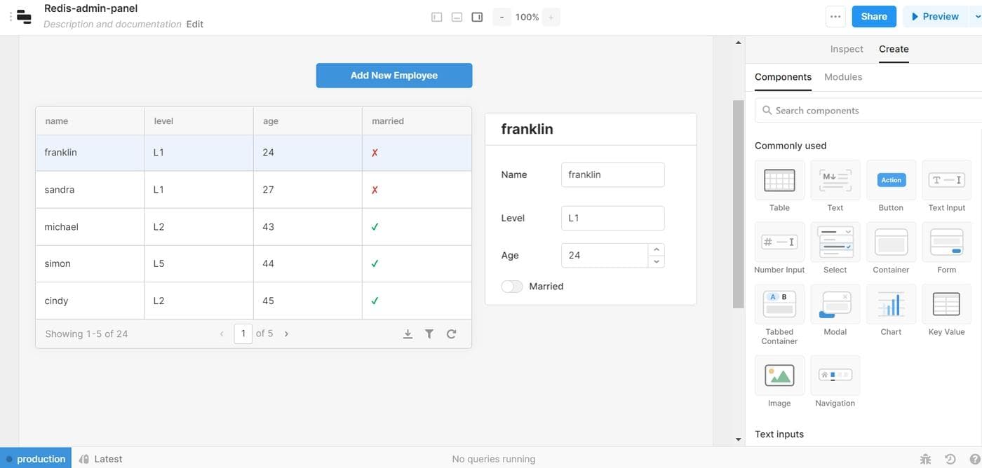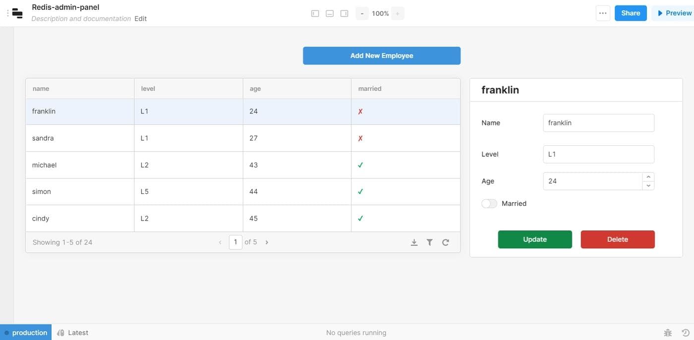In this article, we used Retool to build a basic CRUD admin panel for viewing and manipulating a sample of employee profile data stored in Redis.
