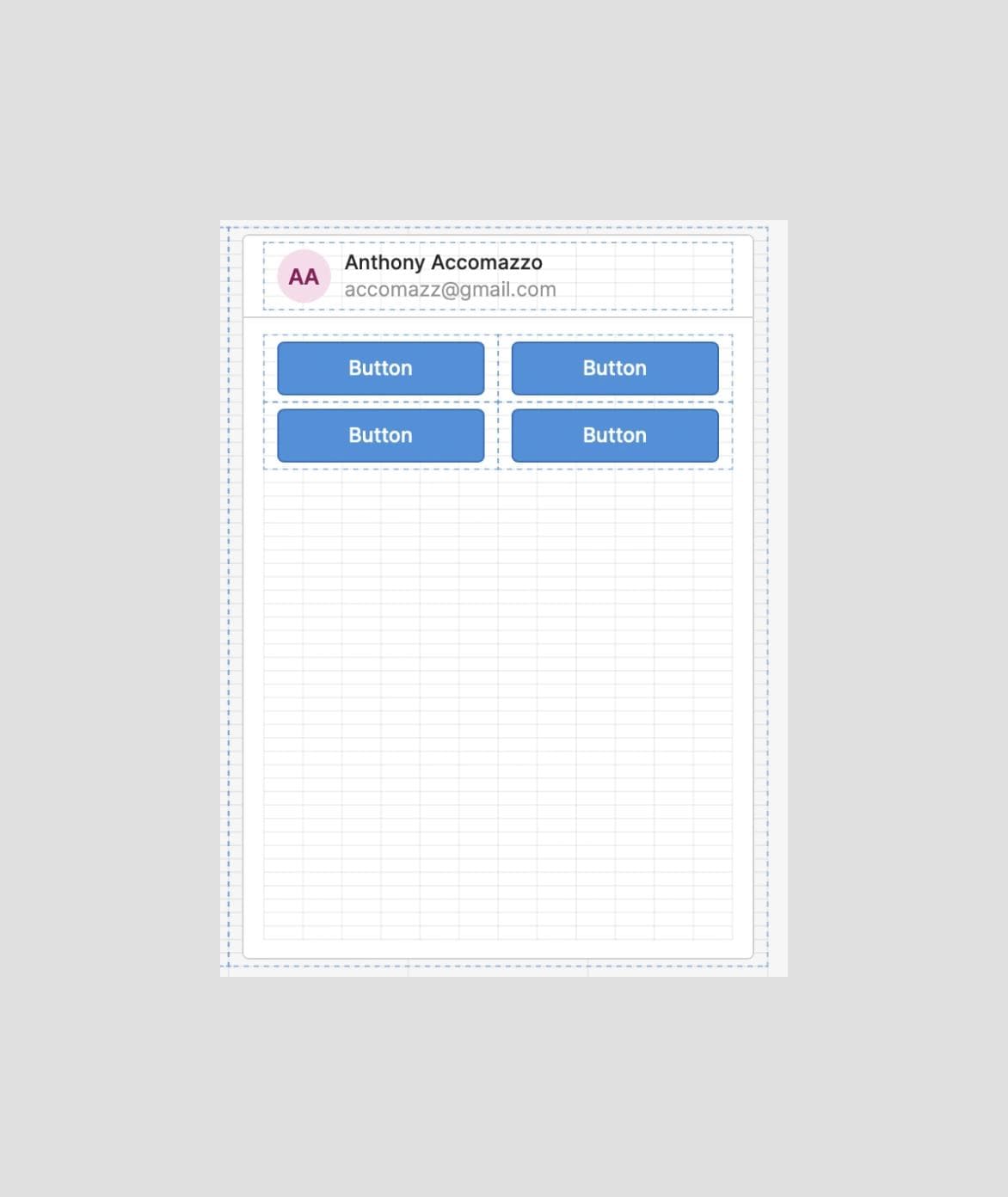 - Next, create the quick link buttons by dragging and dropping four Button components into the container. At this point, this section of the app will look something like this: