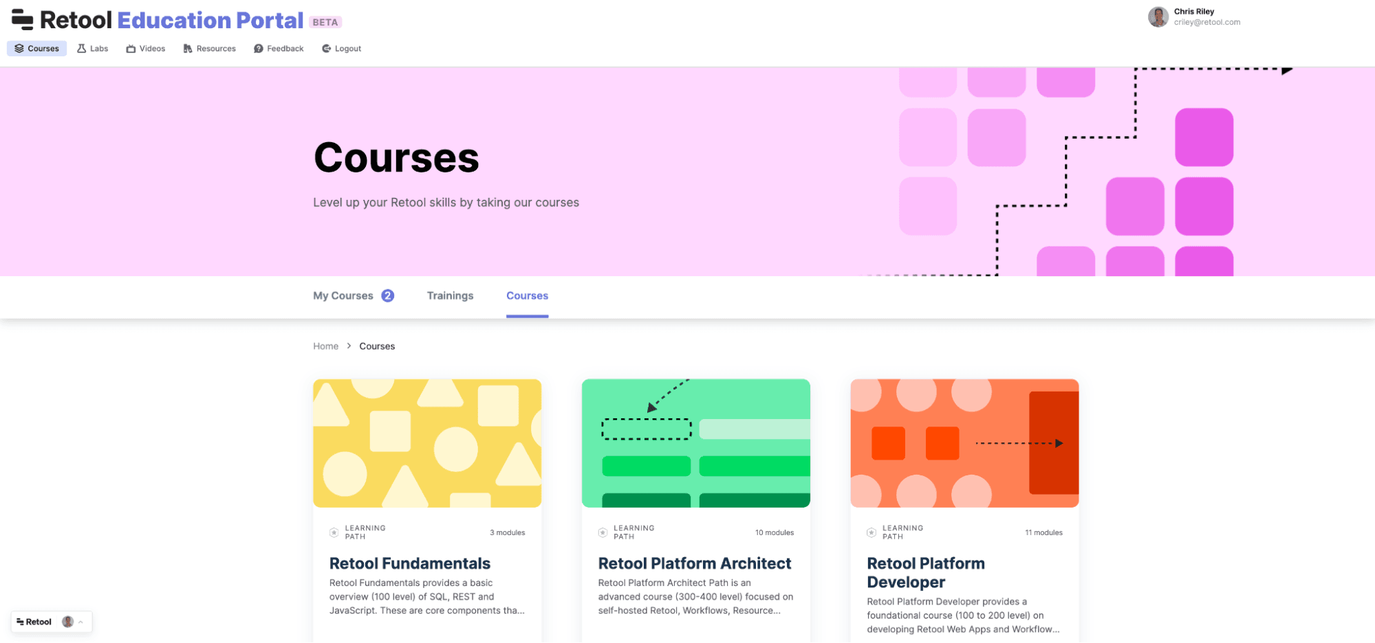 We built Retool University because we wanted to create a space for all builders to hone their skills with relevant coursework and highly contextual, self-service experiences. What started as a portal for our partners evolved into an integrated educational platform built with the tools we already have. You can start your learning journey by creating a free Retool U account.