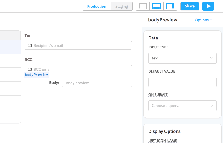 Nice! When we change the selected row, the query to get that row’s email automatically runs, and fills in the data in our TextInput.