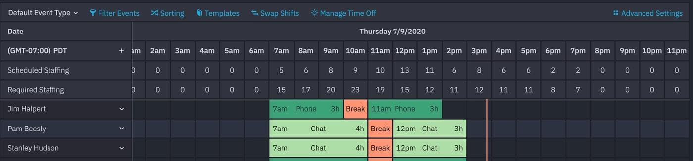 For example, the base_interval setting controls the size of cells in our team calendar. The default is 3600 seconds, or an hour. The team calendar also shows helpful metrics like how many people are scheduled versus required, and several of our larger users prefer to see such metrics at 30 or even 15 minute intervals to plan more precisely. The UI becomes incredibly information-dense but they explicitly want more data!
