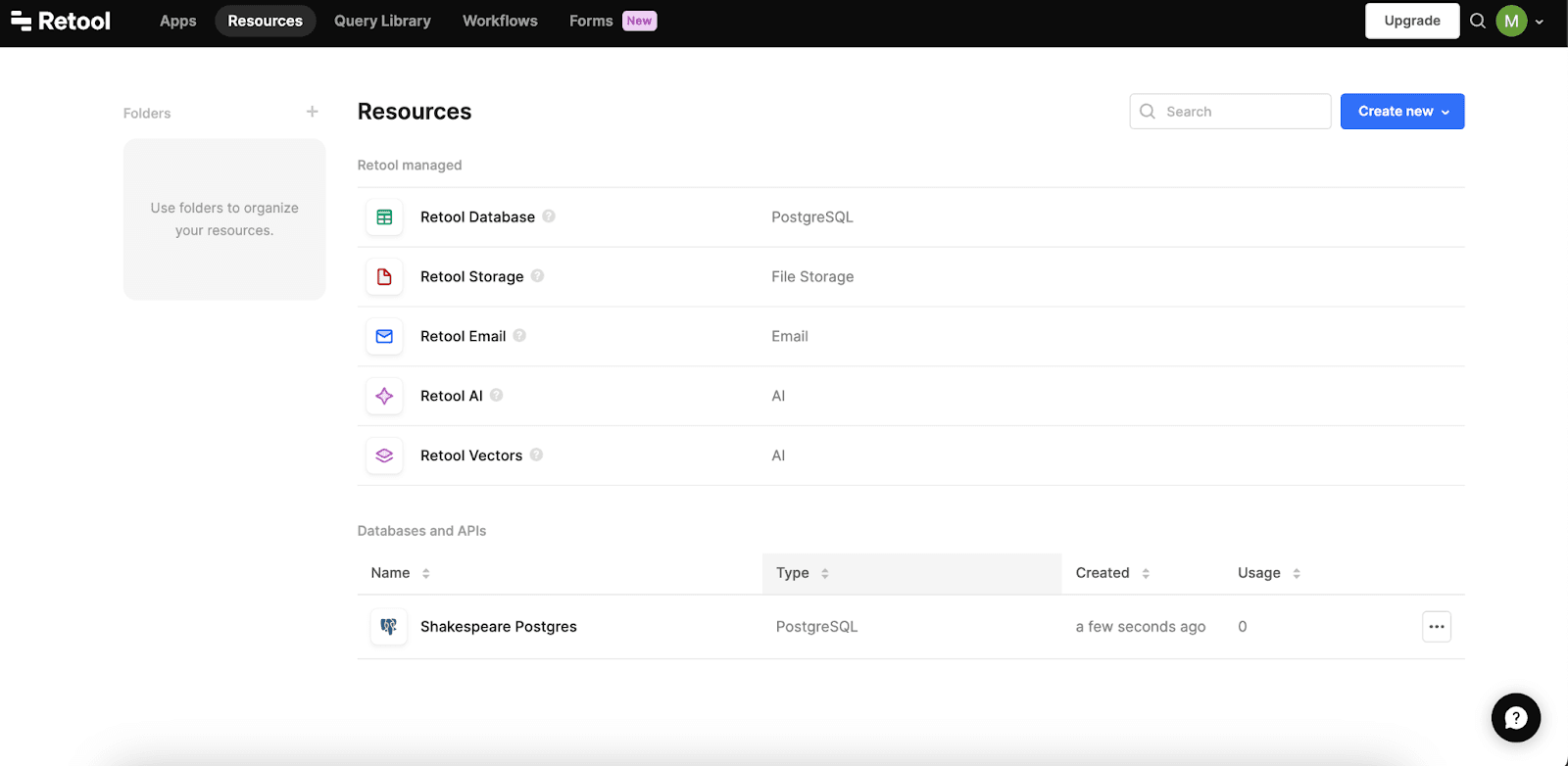 Using a connection endpoint, the Postgres database can talk to the internal app software. With our on-hand database information, we can sign in to our internal app software—Retool, in this case—and initialize a new resource.