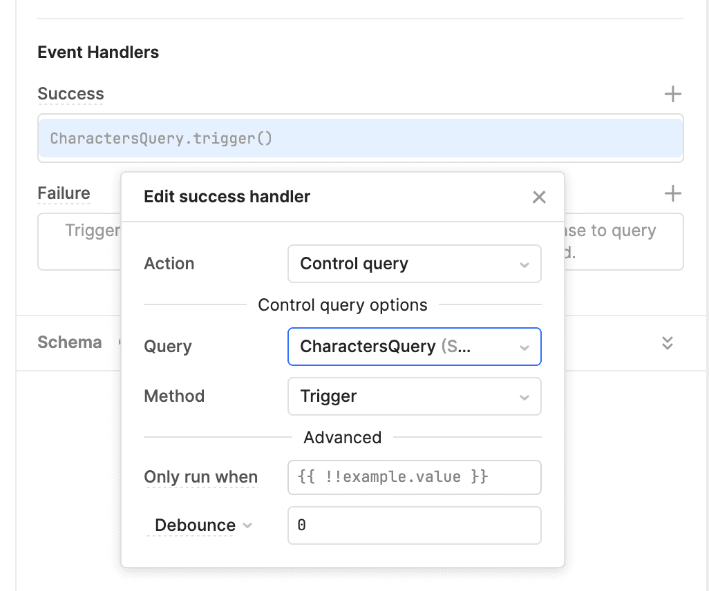 We then simply set it to run the UpdateCharacter query we just wrote.