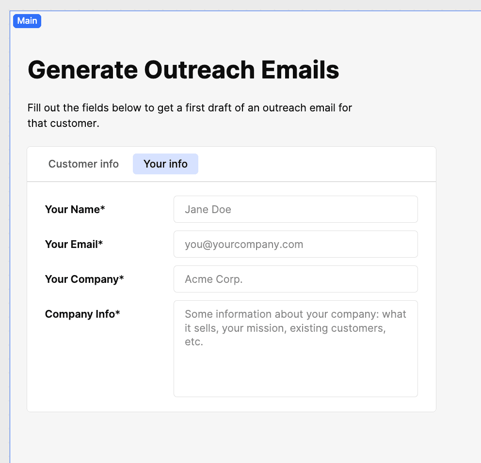 Now, all you have to do is enter different information for each recipient and generate a new outreach email each time. With this app, you can change up the prompt over time, feeding it the successful outreach emails to get a better and better response rate.