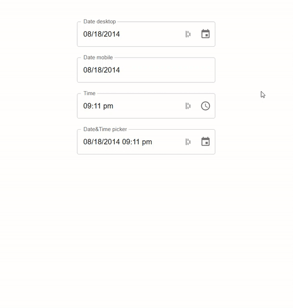 - Date desktop: selects dates with the UI most suitable for your desktop