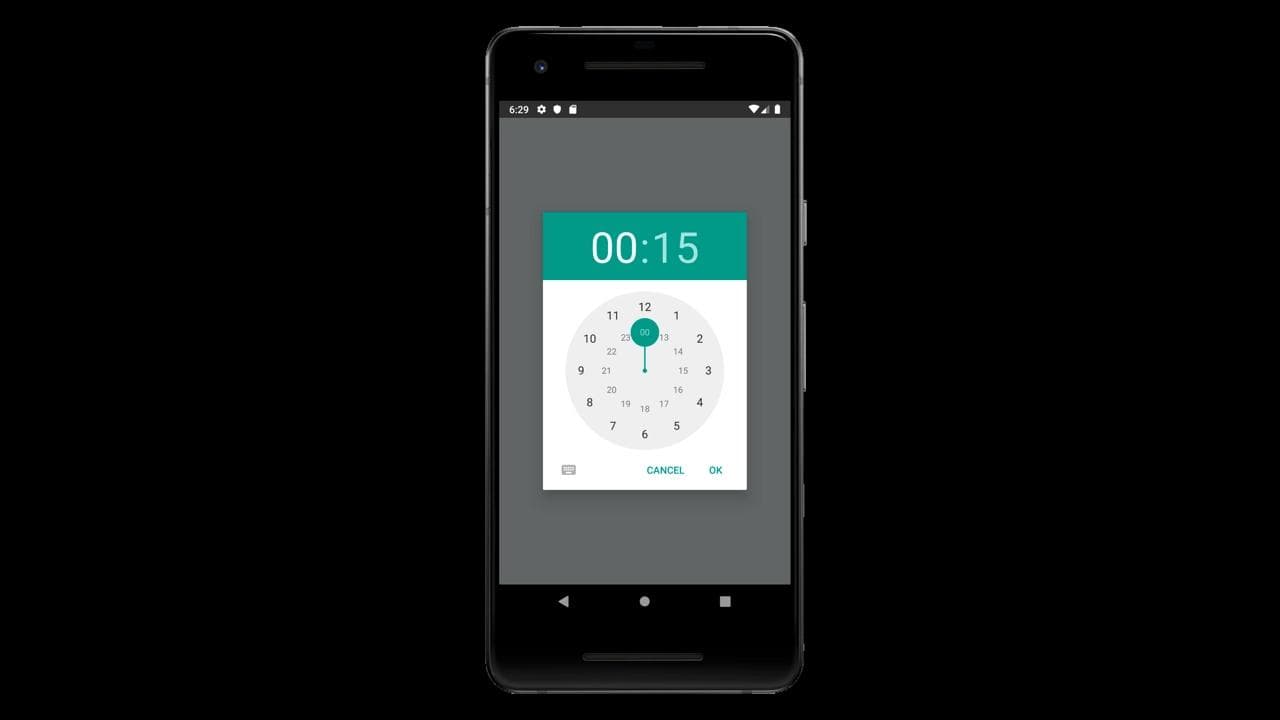 A wheel time picker resembles an actual clock and makes it easy for the user to select the correct time. It starts by asking for the hour and then intuitively changes the numbers on the wheel so that the user immediately selects the minutes next. Depending on the implementation, there are several ways you can change the value of the minutes. Some wheel time pickers show the numerical digits (ie hours or minutes) after you select them, and some have buttons that you can select. These buttons are usually simple arrows that let you toggle between the hours and minutes.