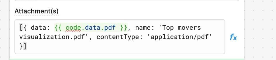 Finally, we can use an email resource like SMTP to easily send an email to relevant accounts and schedule the workflow to run every Monday morning. We can even leverage the trick above to add an attached PDF containing a visualization we generated earlier: