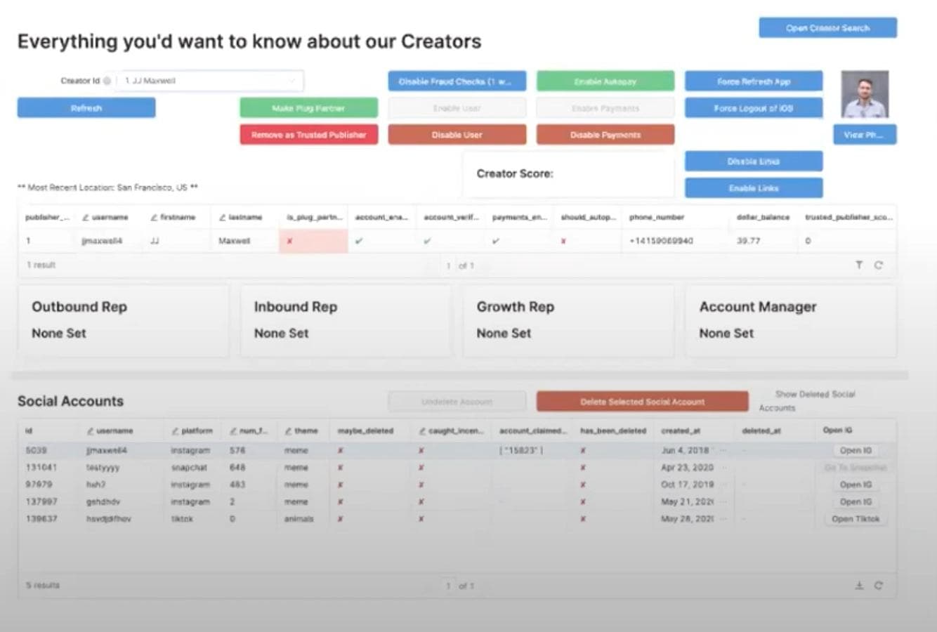 Retool enabled us to scale to millions in revenue and support thousands of creators with a lean engineering team. Every single internal team member is using Retool every day to support our creators and advertisers in one way or another.”