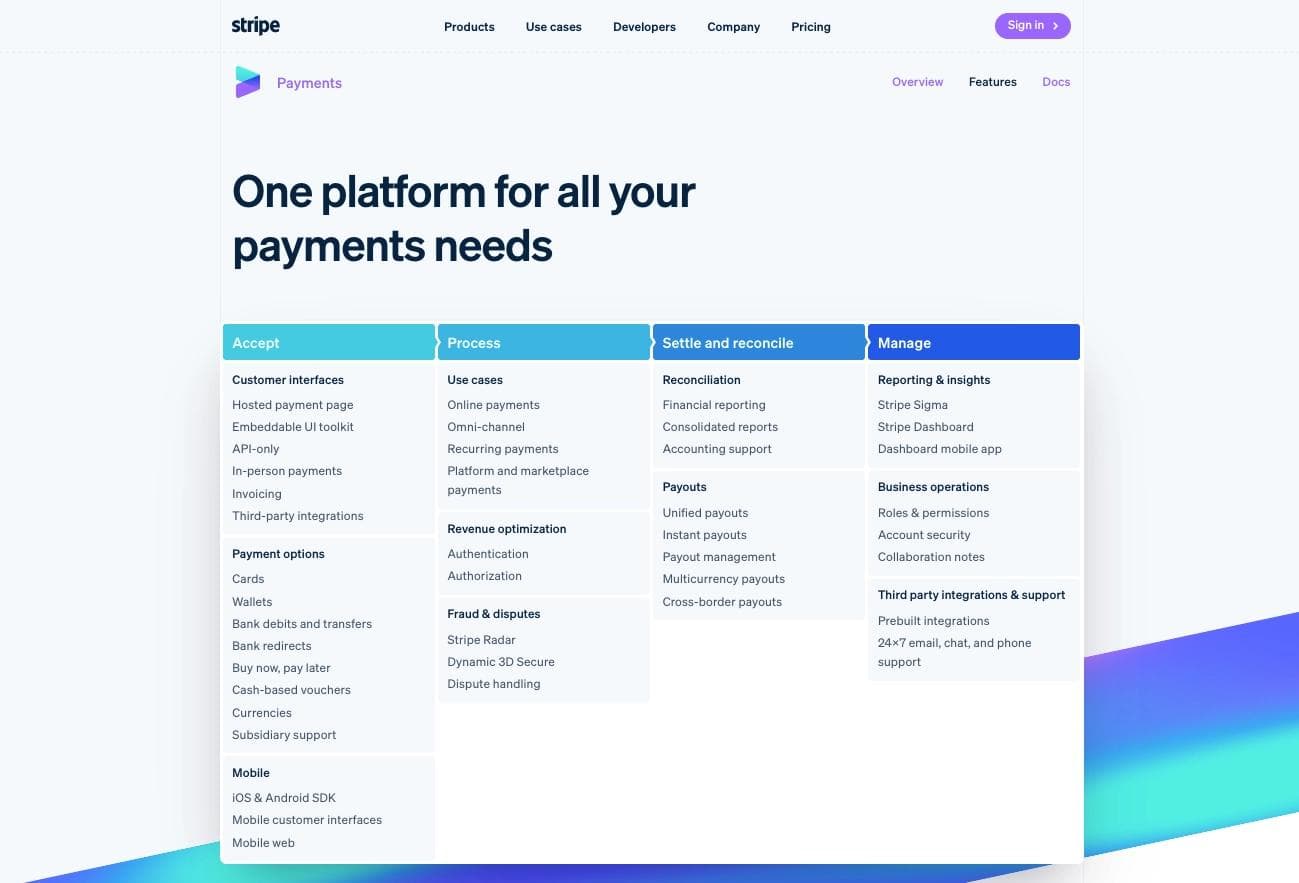 And then Stripe's teams of engineers get to worry about maintaining the platform, and the API, and all of the necessary security features, so you don't have to.