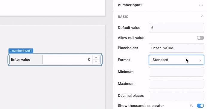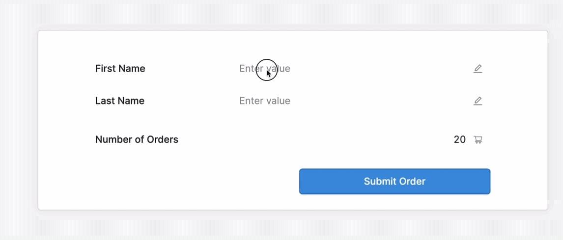 We’ve also overhauled Editable Text and broken out numeric functionality into its own component, Editable Number. In addition to their ability to edit static text on click, each component now carries the same features of the core Text and Number inputs like configurable prefix/suffix text, built-in validation rules, and, for Editable Number, specialized formatting like percentage, currency, and more. You can also choose text size—for example, designate a text box as an H1 heading—so that you can use this as an easy customizable text component for your end users wherever you need.
