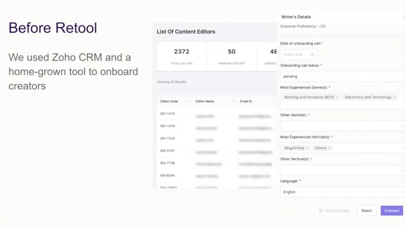 The team started by rolling out Retool for onboarding writers first.