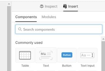 In order to give your users the ability to add vehicles to the list, go back to the Insert tab and find the Modal component. Drag it into the header, just below your title. In the inspector change the button text to New Vehicle.