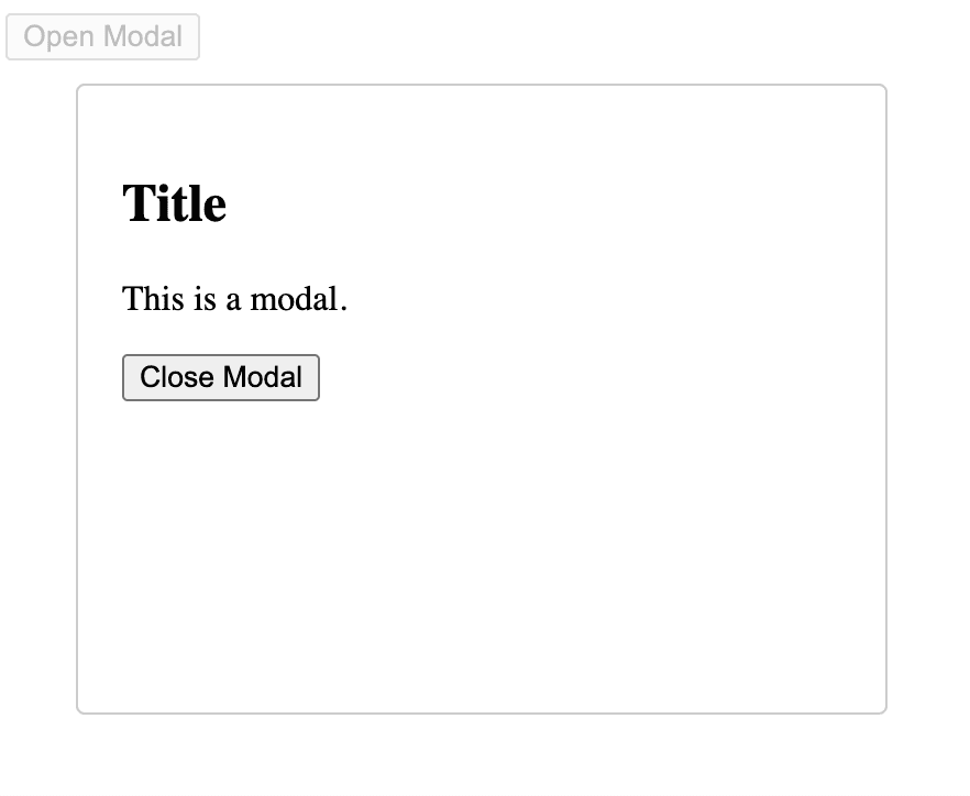 Notably, we will not be covering styling modals. Styling React components is a fairly opinionated topic from both a design and technical standpoint. For the purposes of this post, we’ll just focus on the functional aspects of building a reusable modal component.