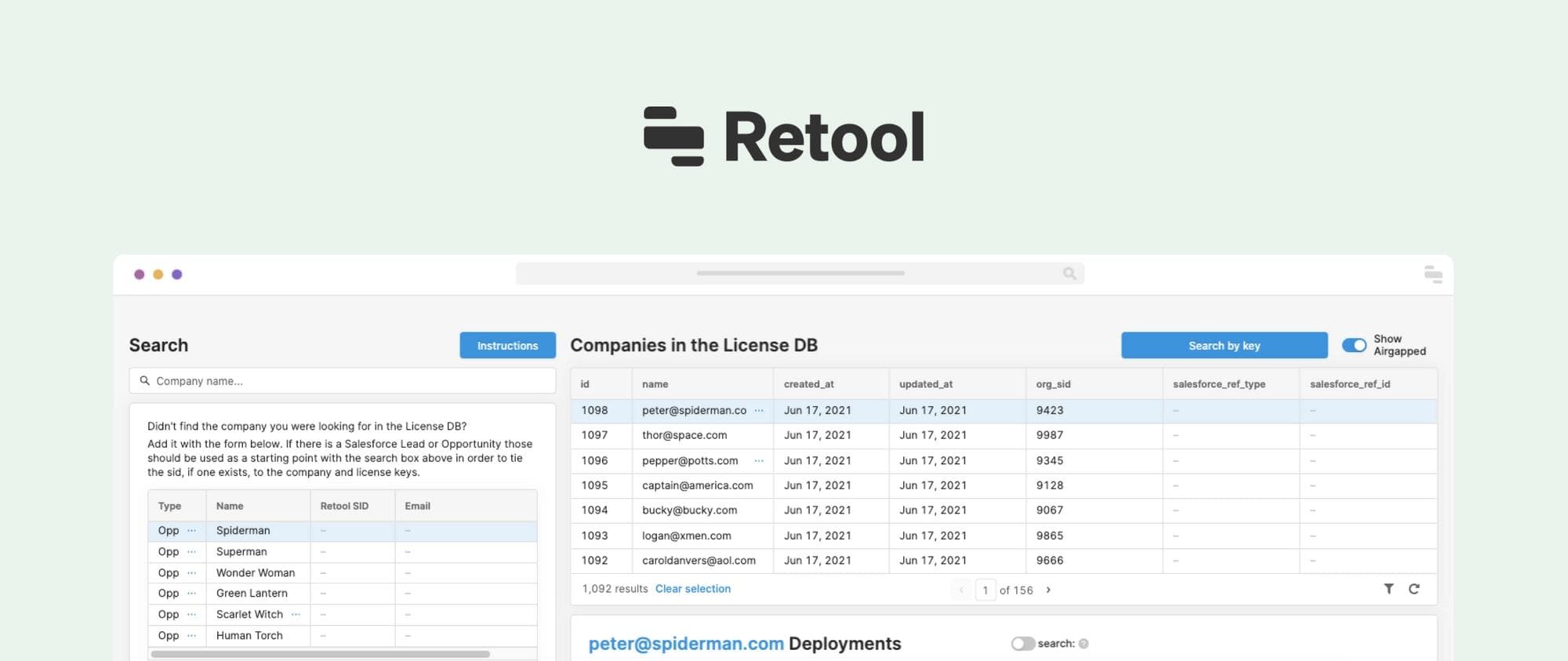 To help developers build business apps safely, we offer a variety of self-hosted Retool plans. But selling self-hosted software means our team needs a way to create, issue, manage, renew, and deactivate license keys for every customer.