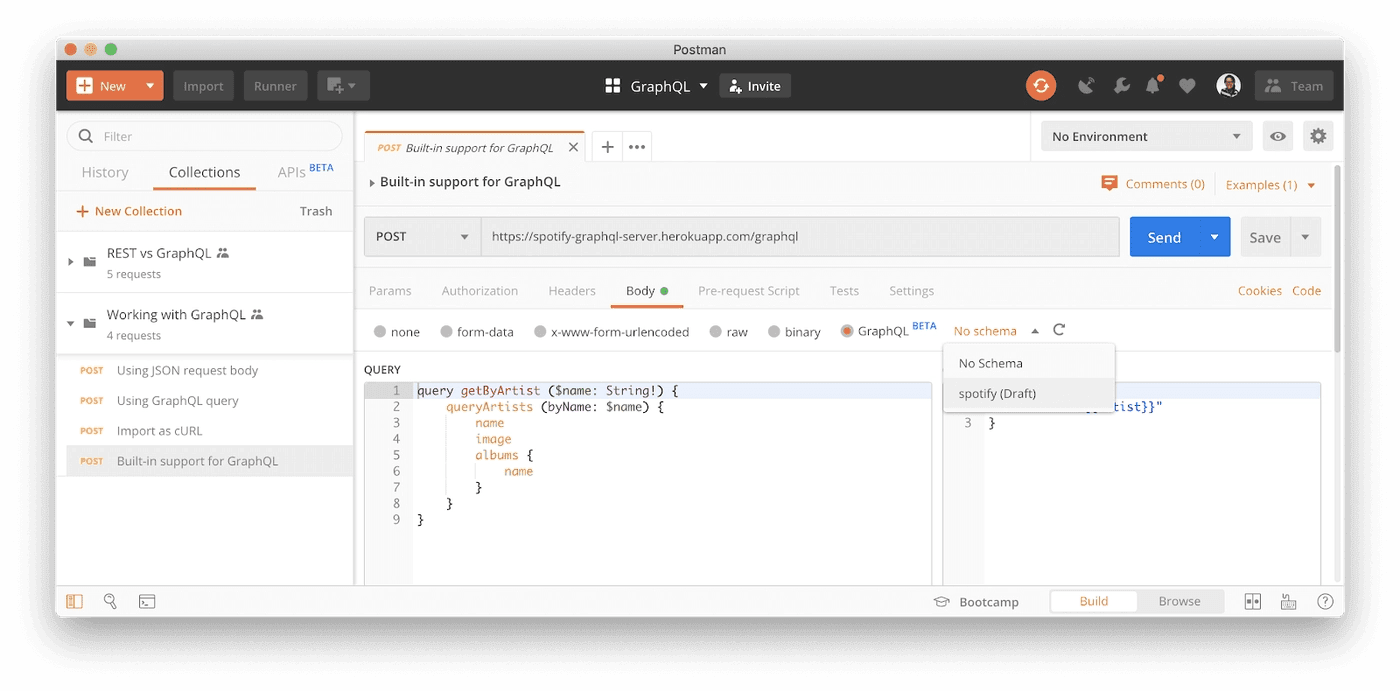 Postman is built and used primarily for REST APIs, not GraphQL. While GraphQL support in Postman has expanded in the last year or so, it isn’t as robust as other applications that are specifically aimed at supporting GraphQL.