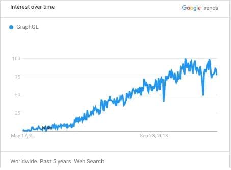 This year, the publicly available version of GraphQL turned five! In the years since Facebook created the query language, dozens of well-known companies from Airbnb and GitHub to Lyft and Twitter have adopted the technology. And interest keeps rising, if Google Trends is anything to go by: