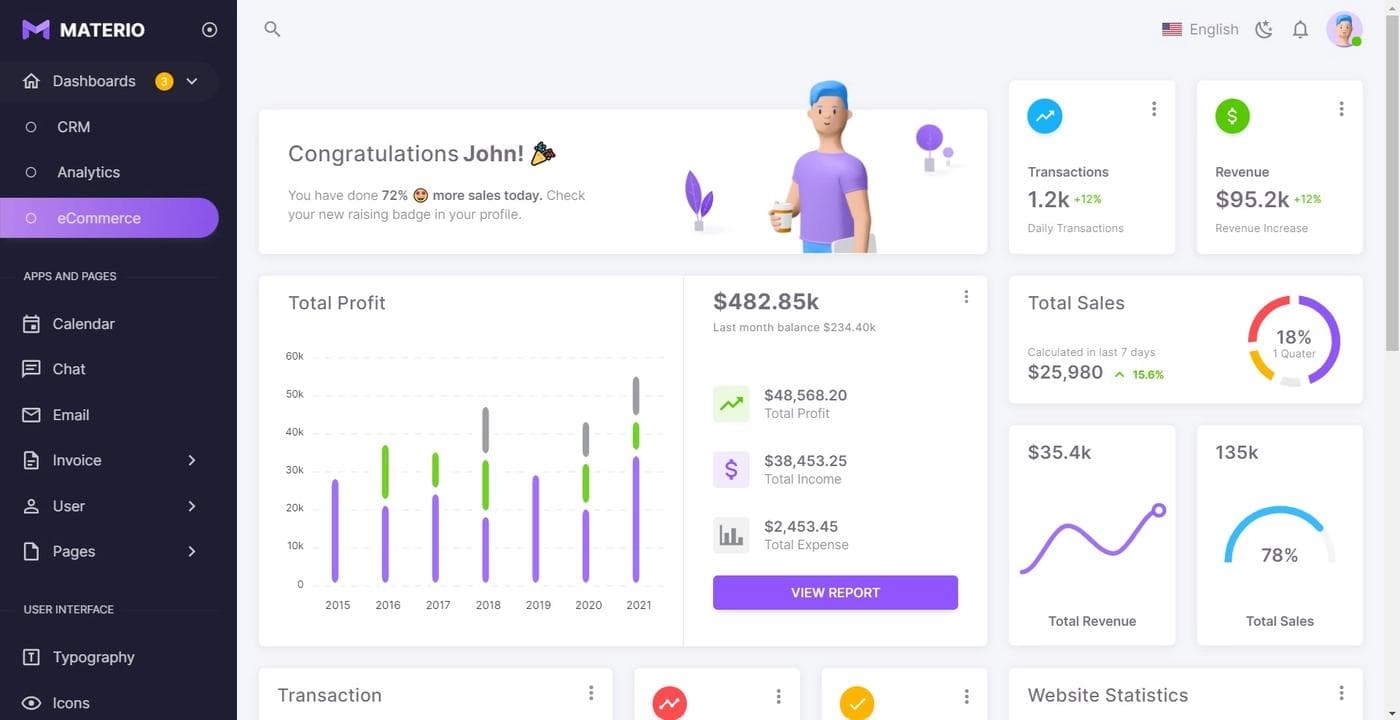 The Materio admin dashboard template is based on Vuetify. Vuetify is a Vue UI library with Material components. This framework makes it easy to design beautiful, user-friendly sites. The dashboard template has a great design, and while the standard versions cost $49 USD, there's also a free version. The free version has fewer customization options and less support, but allows you to get to know the templates before you commit.