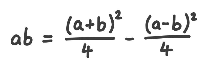 The next hack came through mathematical identities — "cheat codes" to express one calculation in terms of another. The Babylonians came up with many of these. A classic is the "quarter-square multiplication", which reduces multiplication to subtraction.