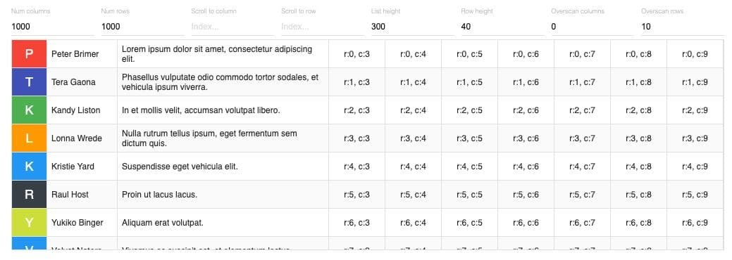 React Virtualized is one of those React component libraries that is hyper focused on doing one thing and doing that one thing really well, and that thing is large datasets. Scope is fairly narrow: there are five components in the React Visualized library, Collection, Grid, List, Masonry, and Table.