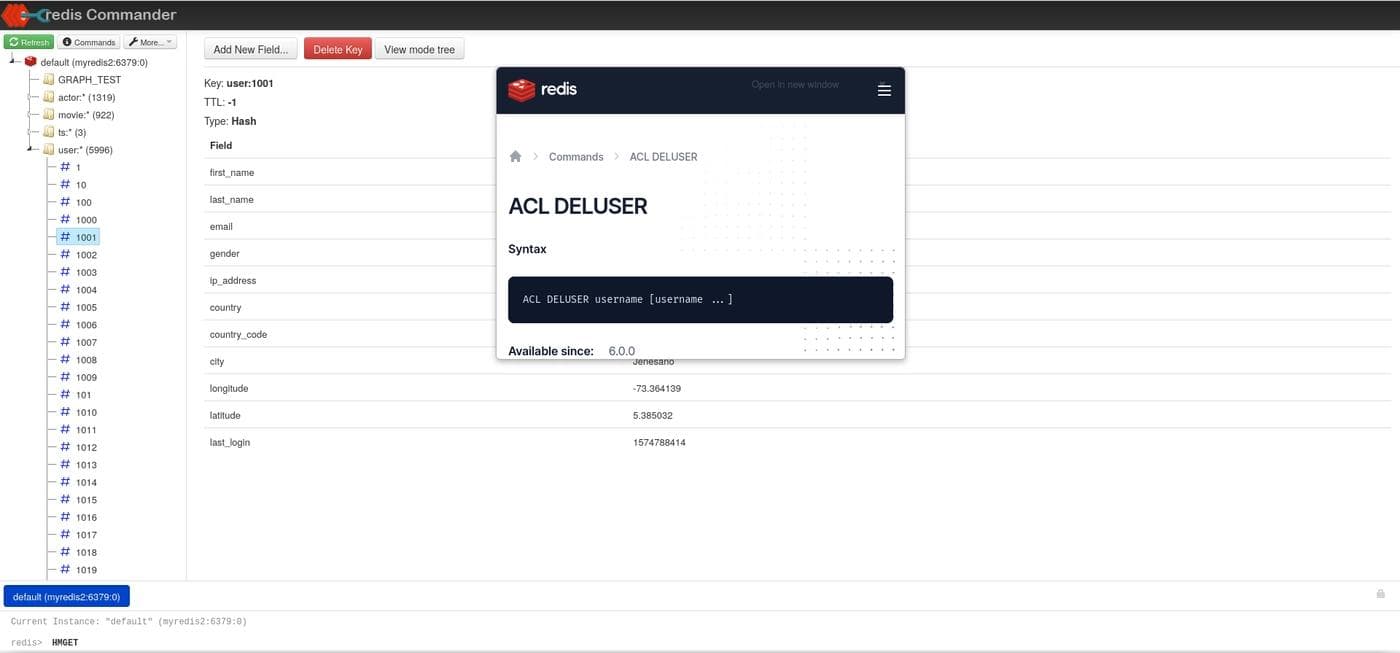 you can also run a CLI from within Redis Commander. The CLI comes with autocompletion and a pop-up window that displays a description of Redis commands.