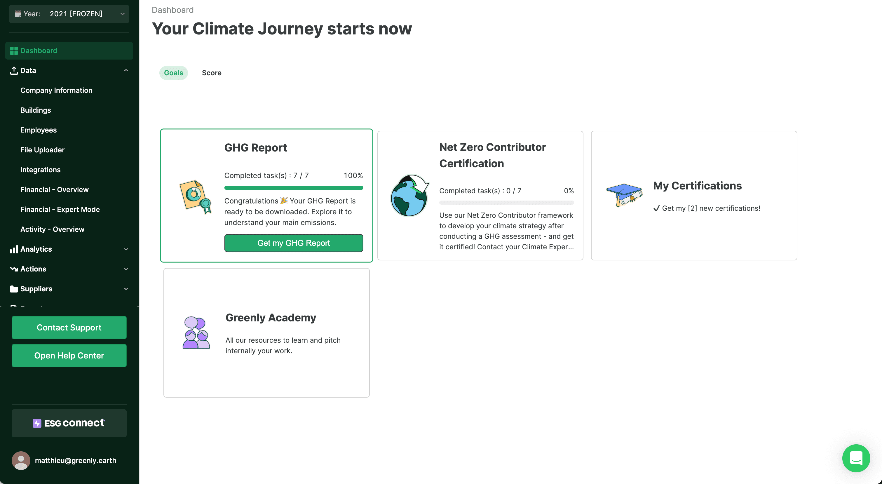 Example: Greenly’s customer portal for tracking progress towards climate goals.