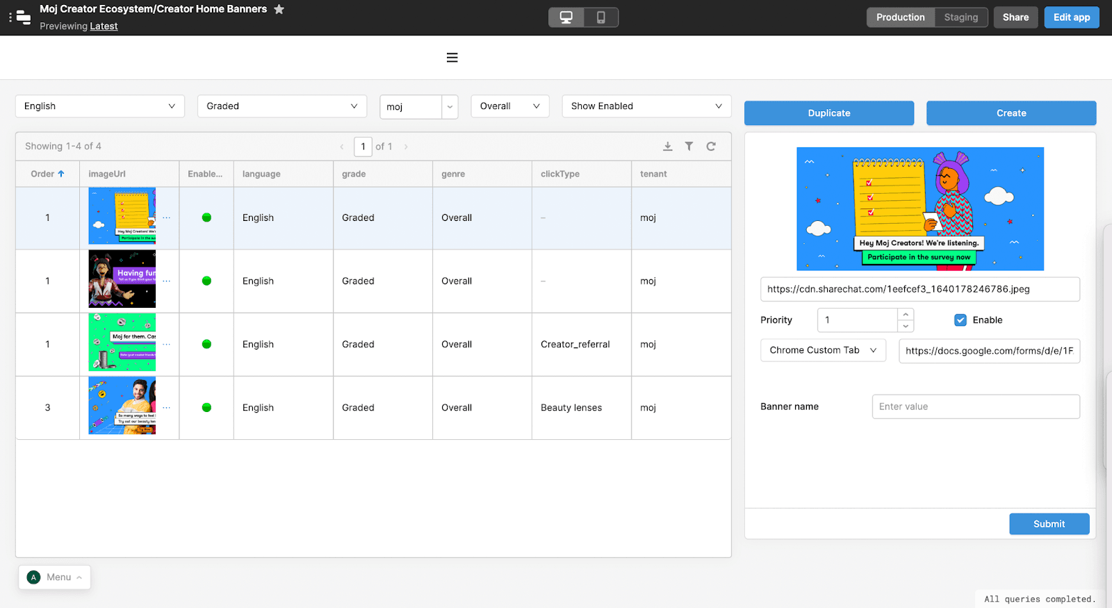 ShareChat has built more than 500 Retool apps and has over 900 monthly active users. Along with the Creator Ops Management app, the team shared 2 other popular apps: