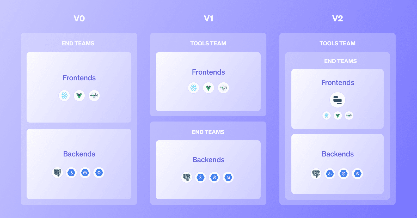 The only way to scale and meet demand was to enable end-teams to build frontends—reverting to a model similar to their original process—but this time equipping teams with a platform, frameworks and structure so that development could be fast and apps could scale as the company grew.