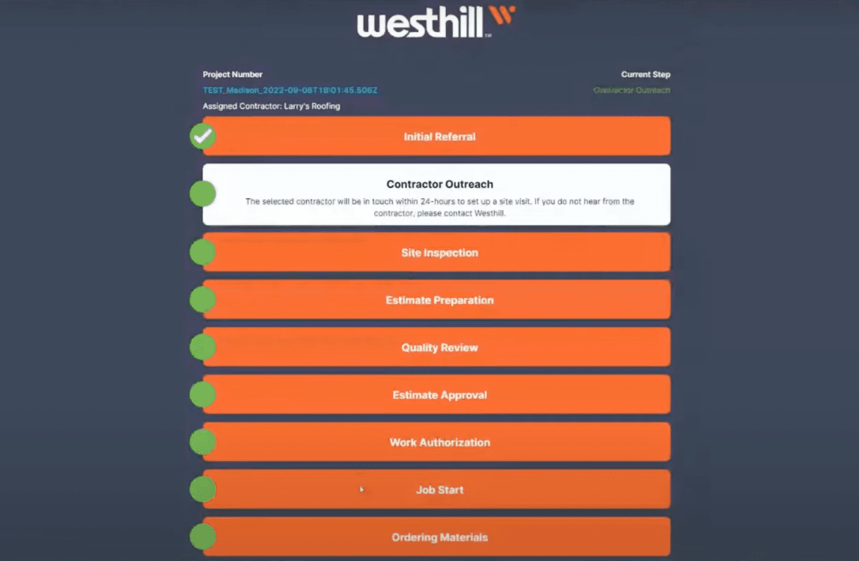 Westhill provides an end-to-end home repair experience, from insurance claim to repair completion. Instead of just receiving a check for a claim–like a flooded basement–policyholders can utilize Westhill’s platform to find a contractor and complete the repair.